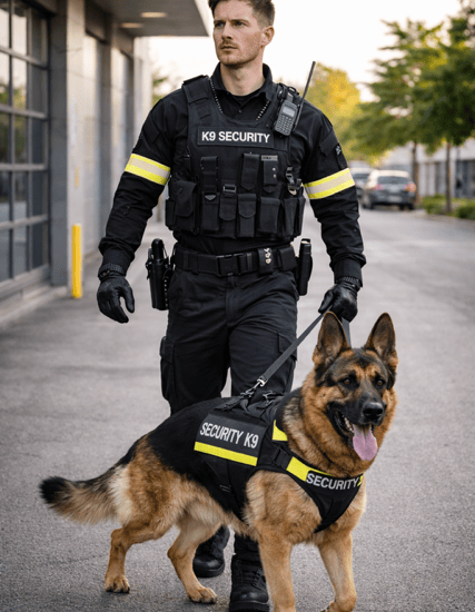 Our K9 security service deploys professionally trained dogs and experienced handlers to provide enhanced deterrence and site protection. K9 units are used to support perimeter security, patrols and asset protection, with all deployments risk-assessed and managed in accordance with industry standards, safety requirements and animal welfare best practice.
